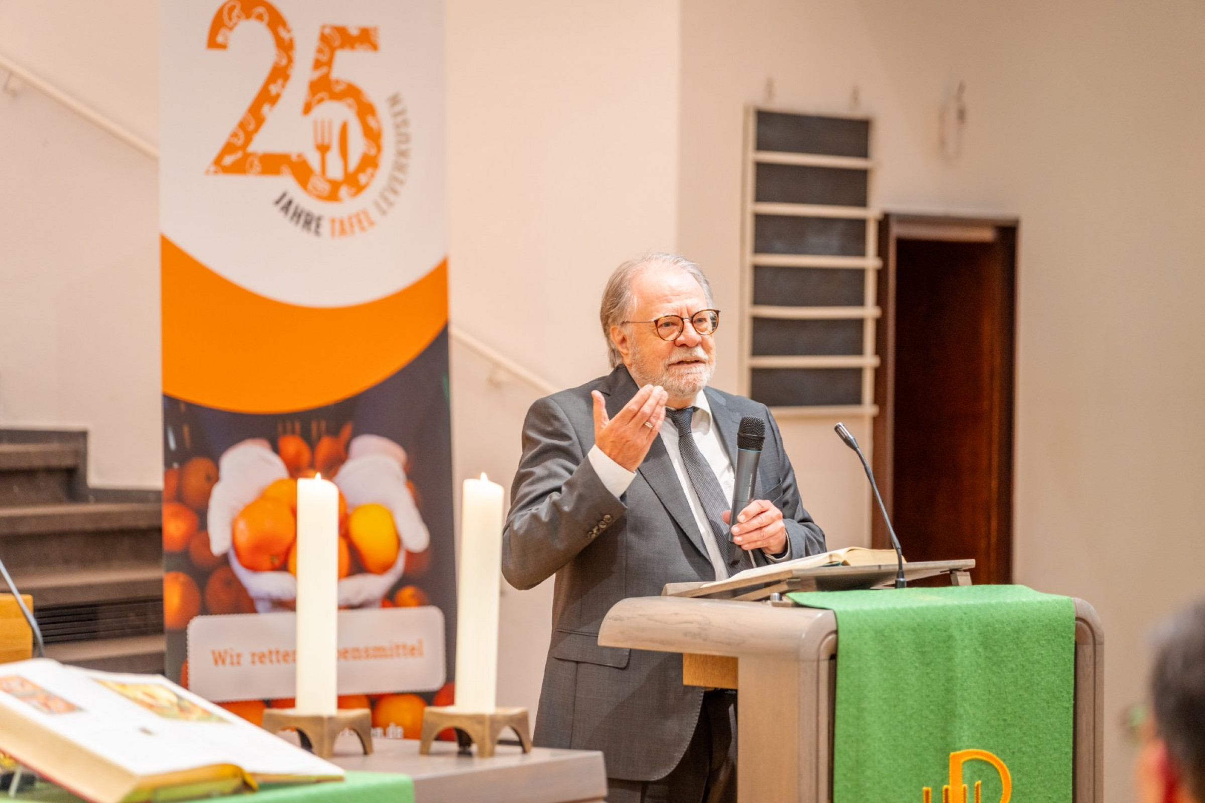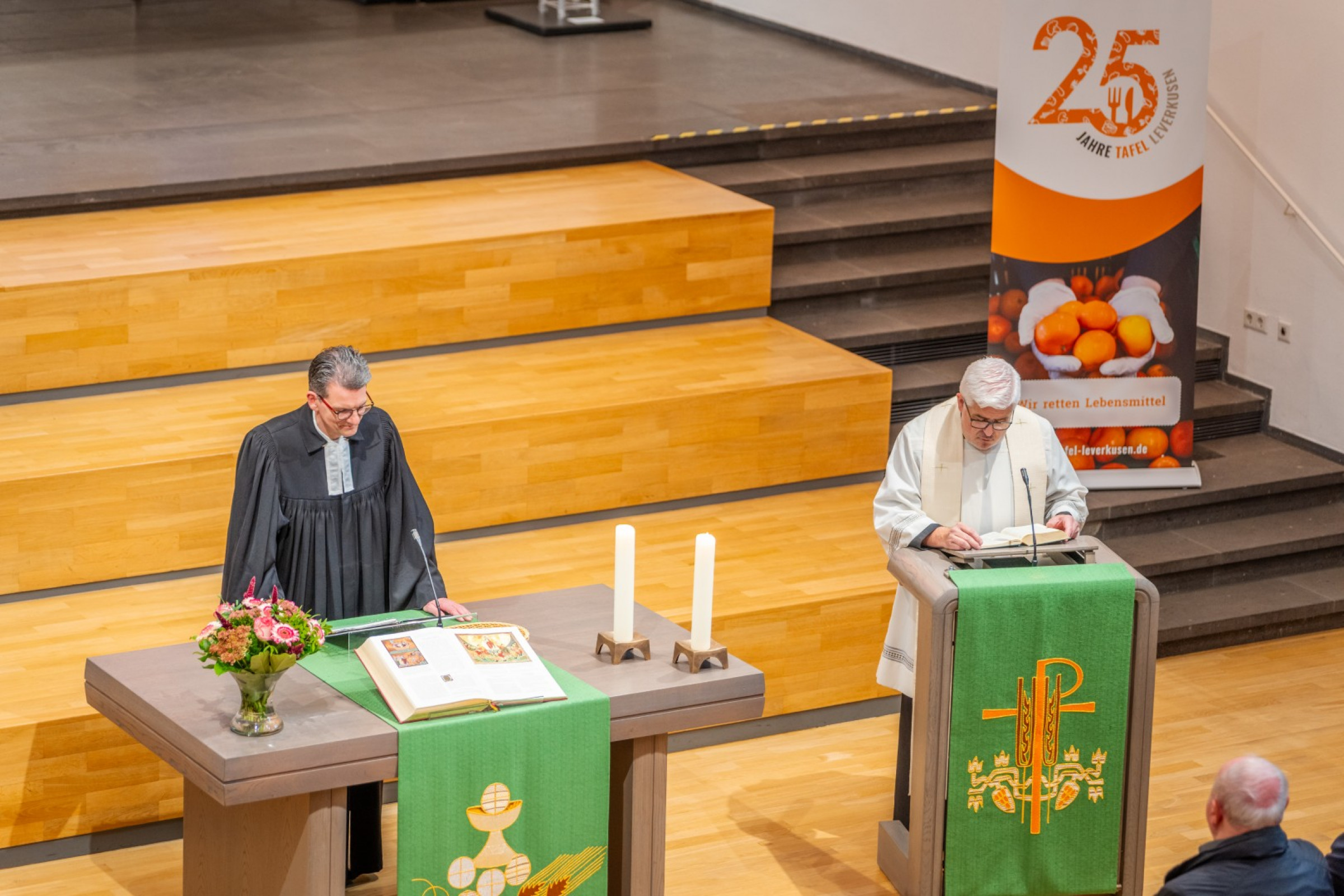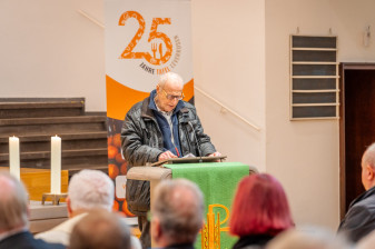 Dieses Engagement haben wir am 11. Oktober in einer ökumenischen Feierstunde zum Jubiläum gewürdigt – gemeinsam mit unseren Unterstützern, Förderern und Partnern aus Politik, Wirtschaft und Gesellschaft. In der Christuskirche in Wiesdorf kamen viele Gäste zusammen und lauschten dem Grußwort von Dr. Adolf Staffe (1. Vorsitzender), den Laudationes vom evangelischen Pfarrer und Hausherrn Dr. Detlev Prößdorf, vom katholischen Pfarrer Stadtdechant Monsignore (Msrg.) Heinz-Peter Teller sowie des künftigen Oberbürgermeisters der Stadt Leverkusen, Stefan Hebbel. Ebenfalls anwesend war sein Vater, Paul Hebbel, der zur Zeit der Gründung als amtierender Oberbürgermeister unser erster Schirmherr war.